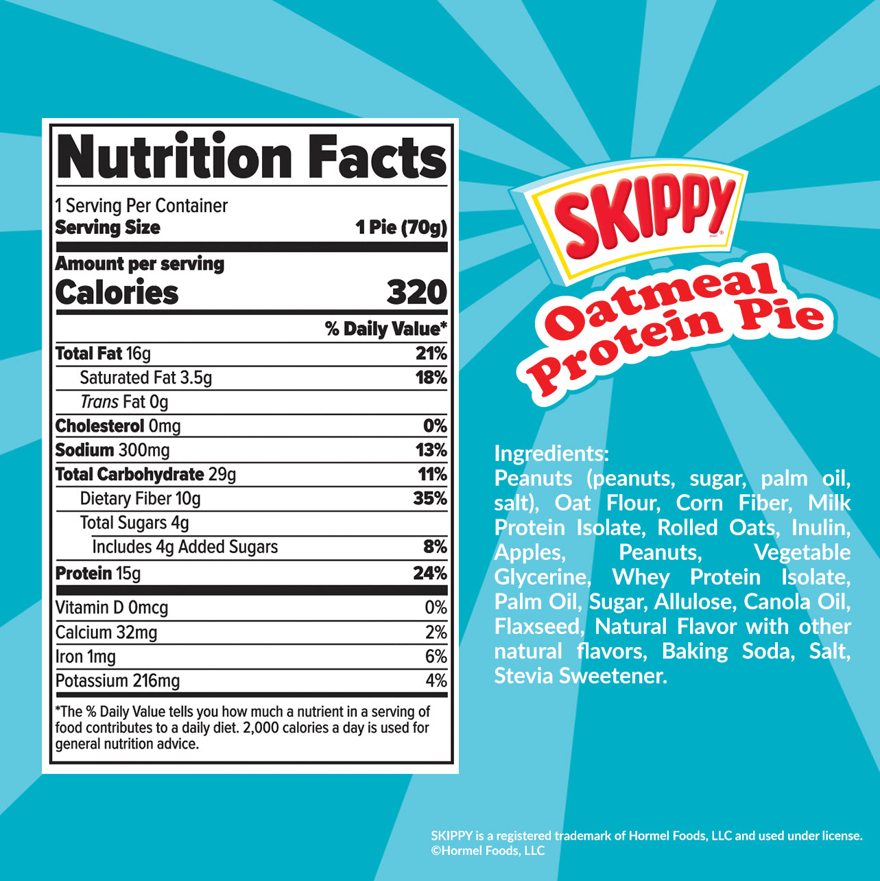 SKIPPY® Oatmeal Protein Pies Contain: Milk, Peanuts