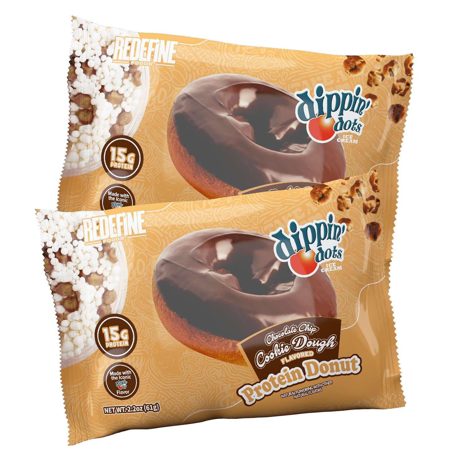 Indulge in the taste of nostalgia with Redefine Foods™ Protein Donut, inspired by the iconic Dippin' Dots® Chocolate Chip Cookie Dough flavor. Each donut is packed with 15g of high quality-protein and made with no artificial ingredients, making it delicious high-protein treat!